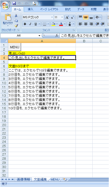 ① いつものエクセルで、画像を貼り付け文面を入力する