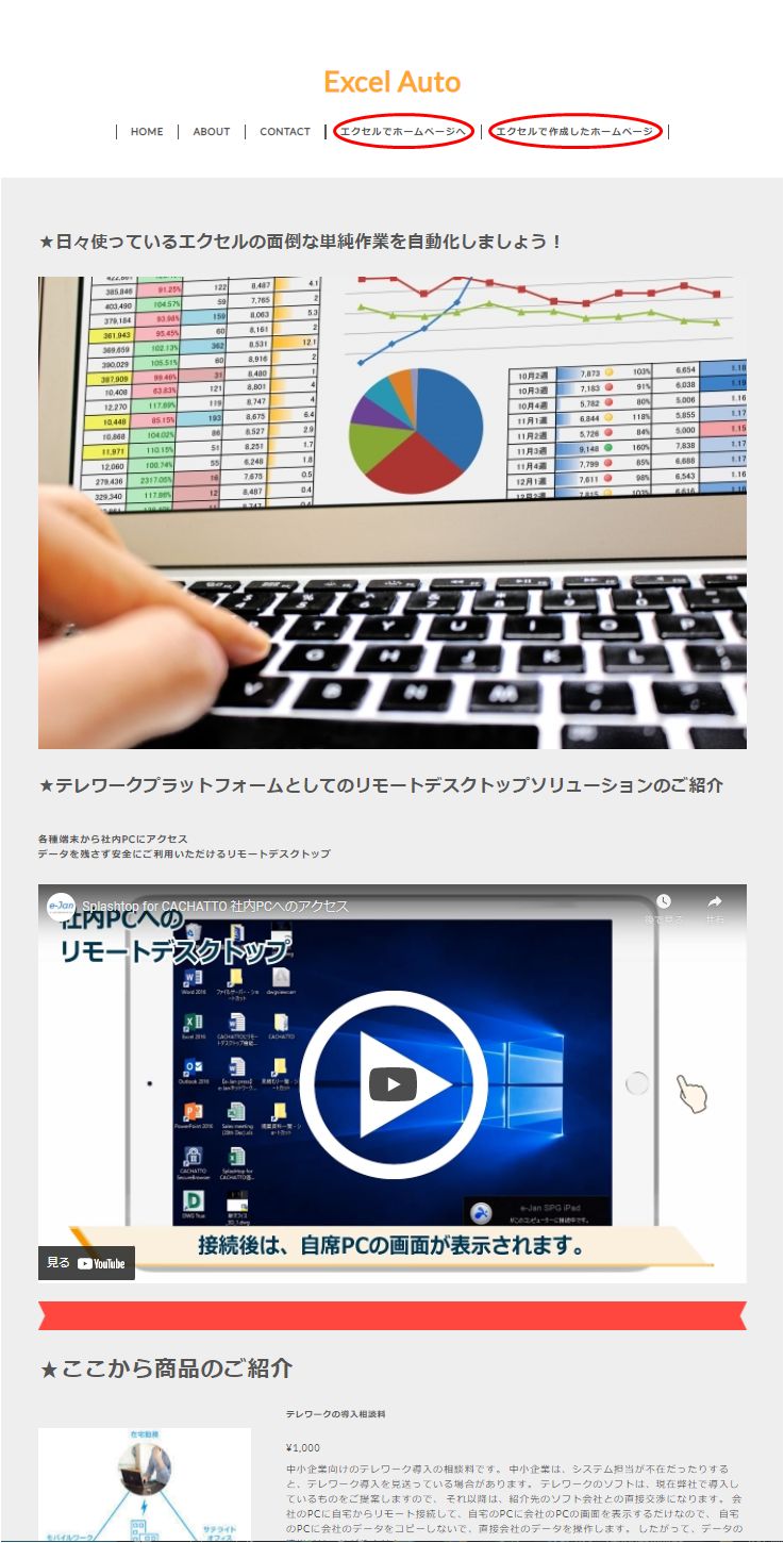 無料サーバーにエクセルで作成したホームページをアップロード済